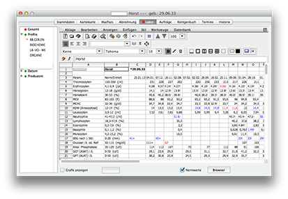 Für die Fachgruppe Radiologie eher unüblich, verfügt MacDoc über eine umfangreiche Sammlung von Schnittstellen zu Laborgeräten und -automaten. Weiterhin unterstützt es den LDT-Datenausaustausch mir externen Laboren.